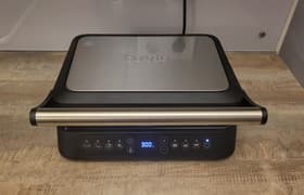 Tuvio TG01DM нам понравился: у него есть 4 автоматических режима (стейк, птица, рыба и разморозка), а также ручная настройка температуры и времени. Особенно удобно, что нагревательные панели съемные — их можно спокойно помыть под краном, не боясь, что вода попадет внутрь и что-нибудь испортит.