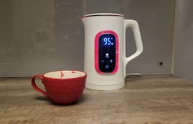 Чайник Evolution KG15153 LCD впечатляет своими возможностями: он оснащен шестью автоматическими режимами и возможностью поддерживать выбранную температуру в течение 12 часов, причем снятие чайника с подставки эту настройку не сбрасывает. Корпус модели имеет двойные стенки: колба сделана из стекла и покрыта прочным пластиком. Отдельного внимания заслуживает подсветка: яркие цветовые переливы неизменно создают приятную атмосферу и поднимают настроение.