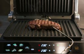 В целом прижимной гриль Lex LXGR 5006 производит благоприятное впечатление и, по нашей объективной оценке, хорошо справляется со своей задачей. Он качественно прожаривает любые продукты и при необходимости может даже деликатно их разморозить — если, конечно, повара не смутит, что после разморозки они будут сплющенными и с рифленой поверхностью, так как фиксатора у крышки нет. Перед приобретением следует помнить, что гриль немного недогревает до заявленной максимальной температуры, и это иногда сказывается на длительности обжарки и степени зажаристости красивой корочки. В остальном гриль оказался простым и понятным устройством с элементарным сенсорным управлением.