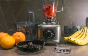 С помощью Redmond FP608 можно натереть и нашинковать овощи, измельчить кофе и другие твердые продукты, измельчить зелень и мясо, приготовить соус, жидкое тесто или тесто средней густоты, а также отжать сок из цитрусовых. Насадки собираются и разбираются интуитивно понятным образом, управление простое, эксплуатация также очевидна и несложна. Если не требовать от многофункционального прибора идеального качества исполнения каждой из технологических задач, то он займет вполне достойное место на кухне.