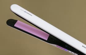 Это симпатичное компактное устройство оснащено пластинами с двухслойным керамическим покрытием, фиксатором пластин в закрытом положении и шарнирным креплением длинного сетевого шнура, предлагает широкий диапазон температурных режимов и встроенную систему ионизации — в общем, имеет всё, что необходимо для успешной укладки волос самого разного типа.