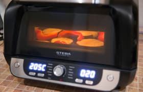 Аэрогриль исправно трудился строго в соответствии с заявленными характеристиками, достойно справился со всеми нашими тестовыми заданиями и доказал свою эффективность. Все приготовленные с его помощью блюда получились вкусными, равномерно прожаренными и запеченными, без пригораний и сырых участков. Прибор оснащен гибкой системой управления, имеет неплохой набор режимов с разумными параметрами, отдельный режим с ручной установкой времени и температуры, а также позволяет корректировать параметры прямо в процессе готовки.