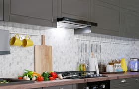 Встраиваемая вытяжка Kuppersberg Slimhit 50 BG понравилась нам качественной сборкой, простым управлением и строгим дизайном, подходящим для интерьеров самых разных стилей. Небольшие размеры и телескопическая конструкция делают эту модель удачным выбором для компактных кухонных гарнитуров в малогабаритных кухнях и студиях. В ходе лабораторных тестов эта модель продемонстрировала хорошее соотношение производительности и уровня шума: по обоим показателям она оказалась средней в своем классе.
