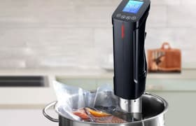 Прибор подключается к домашнему Wi-Fi, что позволяет управлять им с мобильного устройства через приложение с довольно широкой функциональностью. Те, кто предпочитает классические способы управления, также имеют возможность использовать встроенные предустановленные режимы, изменять единицы измерения и калибровать датчик температуры. Во всем остальном Inkbird ISV-100W работает как хороший и понятный в эксплуатации погружной су-вид.