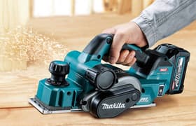 Как и любой аккумуляторный инструмент высокой мощности, рубанок не предназначен для масштабной деятельности. Даже самый емкий аккумулятор не даст достаточно энергии, чтобы выполнить сколько-нибудь серьезный объем работы. Назначение такого инструмента — быстрая обработка деревянных поверхностей в неподходящих условиях, без необходимости подготавливать рабочее место. Плавный старт и электрический тормоз, поддержание оборотов под нагрузкой, защитный рычаг, трехразмерные V-образные канавки для снятия фаски, бесключевая установка упоров — эти качества относят рубанок Makita KP001GZ к профессиональному классу инструментов.