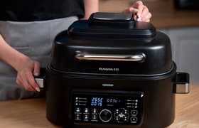 Аэрогриль Rawmid RMA-04 — это красивый дизайн, минимальное использование масла при приготовлении блюд, быстрота готовки. Устройство вполне может заменить на вашей кухне духовку и микроволновку: оно и выпекает, и разогревает, не говоря уже о его основной функции — гриле, с помощью которой можно приготовить прекрасные стейки, овощи, и даже поджарить хлеб, если вам вдруг захочется использовать это устройство вместо тостера. Наши эксперименты по использованию термощупа в приготовлении стейков и курицы вполне нас удовлетворили, а выпеченные в гриле круассаны по качеству превосходили круассаны, приготовленные с помощью других приборов.