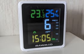 Климатический датчик Rawmid Modern RMS-01 с хорошей точностью измеряет температуру, относительную влажность и уровень загрязнения воздуха взвешенными частицами. Полученные значения, а также точное время прибор демонстрирует на ярком цветном дисплее с отличной контрастностью: цифры неплохо читаются при любом, даже самом ярком освещении. Датчик легко синхронизируется с популярной экосистемой Tuya/Smart Life и Home Assistant, без труда интегрируется в совместимые системы умного дома.