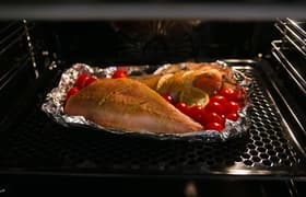 Устройство превосходно справляется с приготовлением разнообразных блюд, за всё время работы мы не столкнулись ни с какими сложностями. К основным преимуществам отнесем равномерность и стабильность нагрева в течение всего процесса приготовления. Можно не опасаться подгоревших или сырых участков продуктов. Единственное — стоит привыкнуть к небольшому завышению температуры при работе режимов с конвекцией. В копилку плюсов добавим также хорошую комплектацию, с удобными противнями и решетками из качественных материалов, и простоту очистки устройства за счет большого количества съемных элементов корпуса.