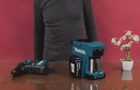 Аккумуляторная капельная кофеварка Makita DCM501Z — это компактное, легкое и простое в использовании устройство. С его помощью можно разнообразить ассортимент горячих напитков во время ремонта или отделочных работ.