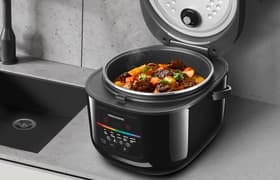 Garlyn MR-Duo 15 — солидный по размерам и количеству режимов работы помощник, способный заменить собой сразу несколько видов техники. Две кастрюли 4,5 л, стоящие на плите, заняли бы больше места, да к тому же их не получится оставить без присмотра, а там более — запечь в них пирог или мясо. Мультиварка Garlyn же великолепно справляется с самостоятельной работой и разными способами приготовления пищи — только заложите в нее продукты!