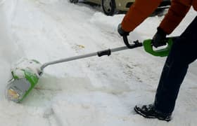 GreenWorks GD40SSK4 40V отличается хорошей автономностью и достаточной мощностью, чтобы без труда расправиться со свежевыпавшим снегом глубиной до 30 сантиметров. Лопате покорится и слежавшийся снег, но, конечно, меньшей глубины. Можно было бы попенять на пластиковый шнек, за сохранностью которого требуется постоянно следить. Однако, будь шнек металлическим, этот ручной инструмент стал бы неподъемным. Все-таки это обычная лопата, хоть и с моторчиком.