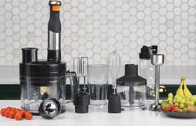 Garlyn HB-330 — это не просто погружной блендер, а полноценный кухонный комбайн «12 в 1». Как показали наши тесты, прибор действительно помогает получить пюре идеального качества, быстро нарезать овощи и смешать ингредиенты за считанные минуты — всё это экономит время, проведенное на кухне, и позволяет готовить не только вкусные, но и очень красивые блюда. Конструкция многофункционального устройства проста и понятна, сборка аккуратная, установка насадок происходит быстро и без трудностей, а сам прибор достаточно компактен при такой обширной комплектации.