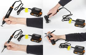 Резьба и выжигание по дереву, клеймение, гравировка, резка, абразивная обработка, шлифование и полирование, аэрография — все эти и многие другие операции возможны с использованием мини-инструментов для творчества Worx серии Maker X. В этом обзоре мы изучим набор Worx WX988 (комплект из гравировальной машинки Worx WX739.9 и паяльника-выжигателя WX744.9 с принадлежностями), а также два отдельных инструмента: мини-углошлифовальную машинку Worx WX741.9 и краскопульт (аэрограф) Worx WX742.9.