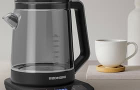 Redmond RK-G1310D — электрический чайник с функцией нагрева воды до заданной температуры с точностью до 1 °C и поддержания нужной температуры в течение двух часов. Прибор имеет лаконичный дизайн с использованием термостойкого затемненного стекла, хромированных деталей и черного пластика. Управление чайником простое и интуитивно понятное.