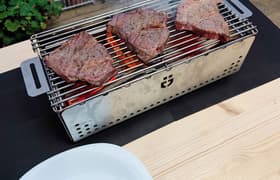 Работать с настольным угольным грилем Buddy нам понравилось. Легко, приятно, не требует специальных кулинарных навыков, каждый может сам контролировать степень подрумянивания и количество еды — очень похоже на выезды с шашлыками с родителями в детстве, только безопаснее, удобнее, аккуратнее и прямо на столе.