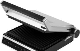 Polaris PGP 3003 Optimal Temp — стильный, красивый, мощный современный кухонный прибор, совмещающий в себе прижимной гриль, барбекю и мини-печь. Гриль оснащен съемными панелями со встроенными тэнами и гарантийным антипригарным покрытием. Управление прибором — сенсорное с дисплеем, простое и интуитивно понятное. Кроме ручного режима выбора температуры, гриль имеет 6 автоматических программ, предназначенных для приготовления стейков разной степени прожарки, птицы, рыбы, котлет, колбасок и сэндвичей. К недостаткам данной модели можно отнести неидеально равномерный нагрев поверхностей и неотключаемую звуковую индикацию.