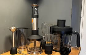 Redmond BH408 оказался не просто «еще одним многофункциональным прибором», а действительно мощным и удобным инструментом для кухни. Он справился с мягкими ингредиентами, помог аккуратно и красиво (а главное — быстро) нарезать картофель для супа, а в режиме турбо измельчил твердые замороженные ягоды. Венчик без проблем взбил белки, а в большой чаше измельчителя мы очень быстро приготовили густой паштет из куриной печени. Нам понравилось, что прибор действительно способен заменить несколько отдельных устройств и при этом не занимает так много места как классический комбайн. Удобно, что скорость можно регулировать плавно, а смена насадок происходит мгновенно и не вызывает никаких сложностей.