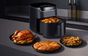 Аэрогриль пробыл с нами несколько недель и действительно смог заменить собой большую часть кухонной техники, которая обычно используется при приготовлении еды на каждый день. Устройство имеет широкий выбор режимов и достаточный диапазон установки параметров для любых сценариев: от медленного томления на низкой температуре до быстрой обжарки и качественного запекания с максимальным нагревом.