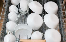 Haier HDWE14-094RU достойно прошла наши испытания. Она хорошо отмывает даже сложные загрязнения, очень неплохо справляется с сушкой, не сильно шумит и довольно экономично расходует ресурсы. Из плюсов отметим также полезную подсветку бака и трехцветную индикацию в виде луча на полу, что позволяет в любой момент определить, на какой стадии мытье. Посудомойка оснащена семью программами. Есть энергосберегающий режим, специальный деликатный для хрупкого стекла, интенсивная мойка для особо стойких загрязнений, пара коротких циклов, один средний по длительности и температуре и один автоматический. На наш взгляд, идеальный набор для любых ситуаций.