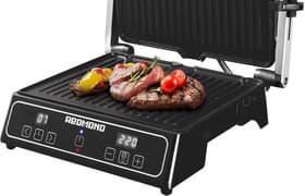 Прижимной электрический гриль SteakMaster RGM-M809 — удобный, простой и надежный бытовой прибор. Панели гриля легко снимаются и подходят для очистки в посудомоечной машине. Управление прибором простое и интуитивно понятное. Гриль может использоваться как стандартный прижимной гриль, как мини-духовка и как открытое электрическое барбекю. Фиксация во всех положениях надежна и удобно организована.