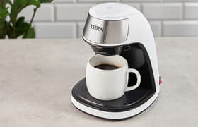 Капельная кофеварка Leben 286-038 с простейшим управлением в виде единственной механической кнопки быстро заваривает чашку кофе или чая, имеет миниатюрные размеры, небольшой вес и изящный эргономичный корпус. Универсальный минималистичный дизайн и доступная стоимость делают эту кофеварку привлекательной для повседневного использования.