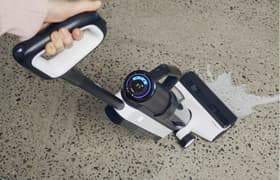Tineco Floor One S5 Combo совмещает два устройства: вертикальный моющий пылесос и ручной прибор для сухой уборки. Он легко трансформируется, а несъемного аккумулятора вполне достаточно для ежедневного мытья полов в трехкомнатной квартире среднего размера. Встроенный датчик загрязнения обеспечивает автоматическое управление уровнем мощности, а удобное мобильное приложение позволяет контролировать ресурс расходных материалов.