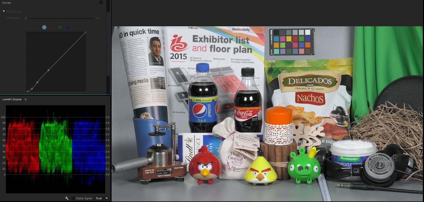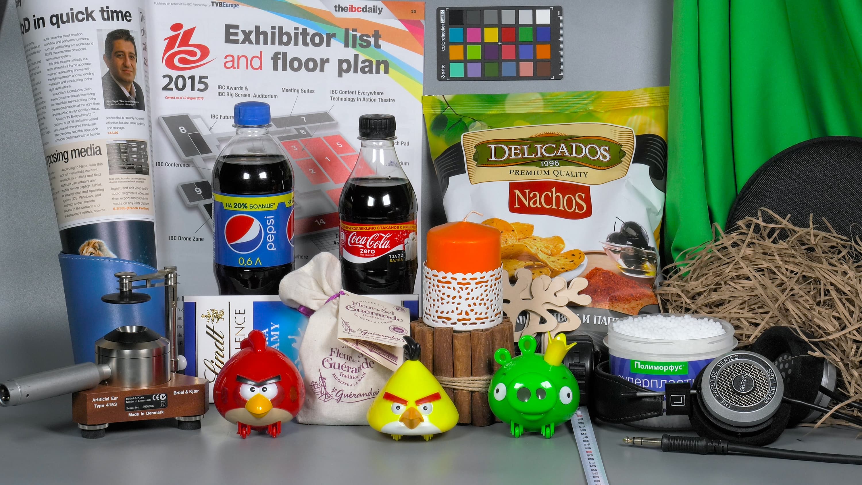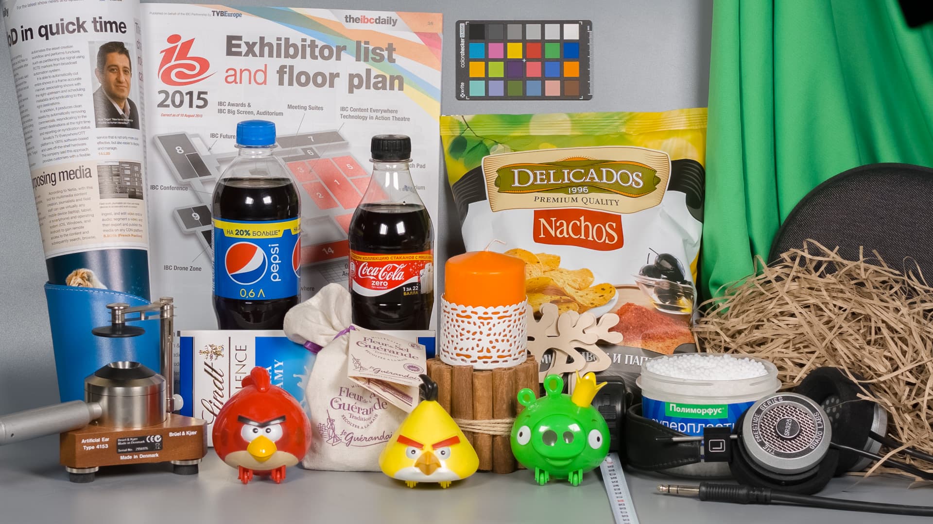Для статьи мы построили специальную тестовую сцену с динамическим диапазоном более 12 стопов, с разнообразными насыщенными цветами, сложными текстурами и не очень большой глубиной.