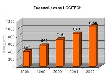 - оборот АЛИОН в 2002 году по товарам Logitech увеличился в 7 раз по сравнению с 2001 годом,