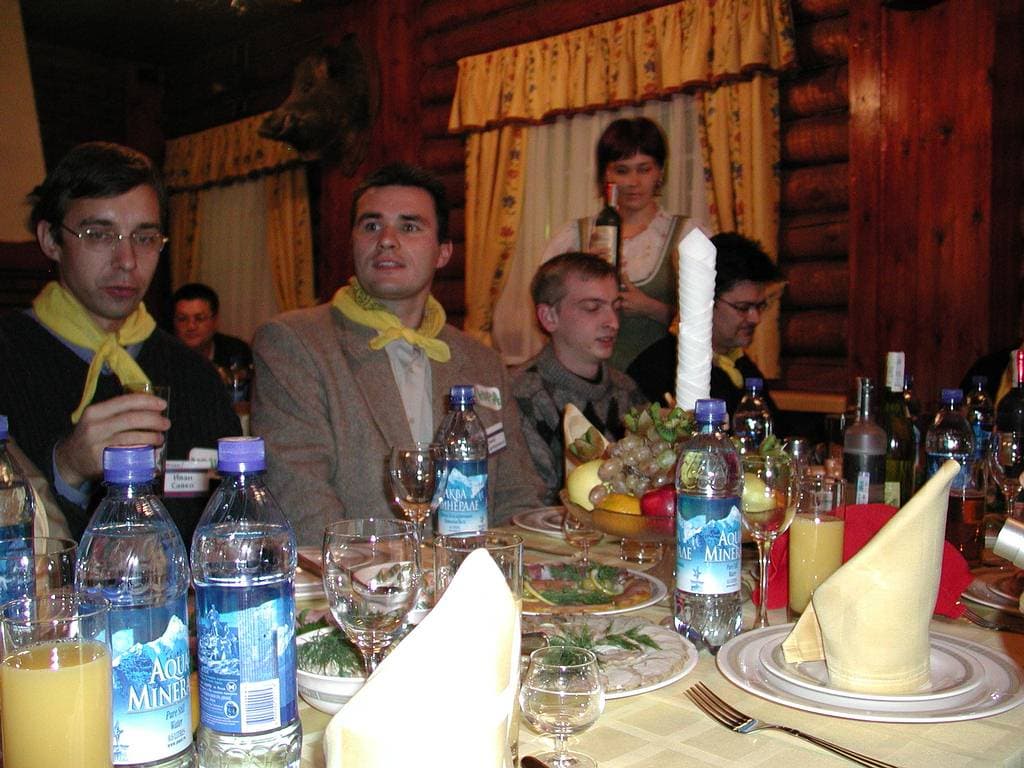 В ресторан к 9.00 я пришел первым, следующим был Николай Докучаев (пресса держала форму :-) ) После вечернего банкета и последующего неформального общения народ собирался долго.