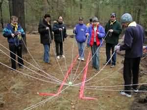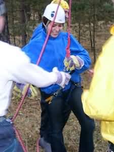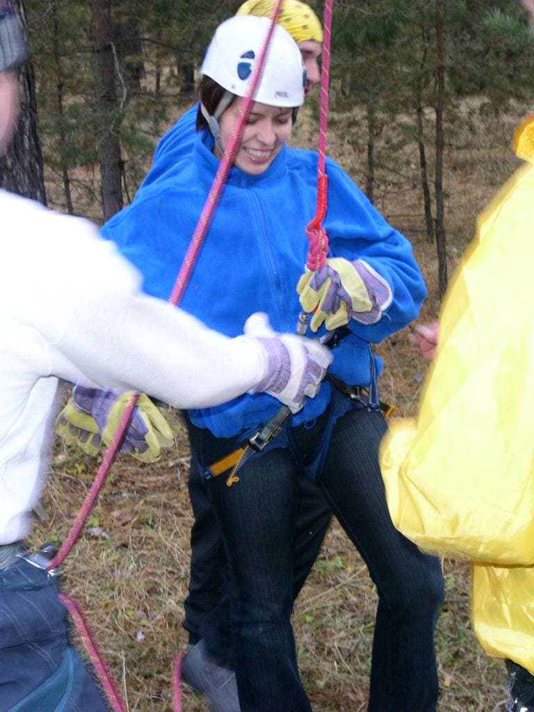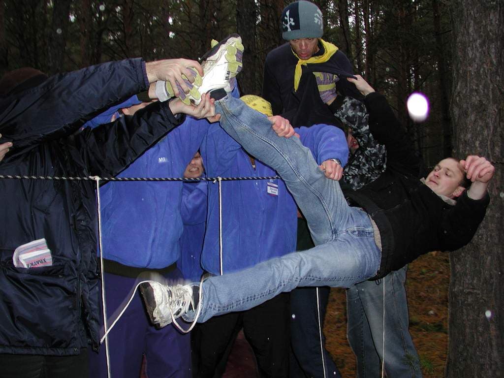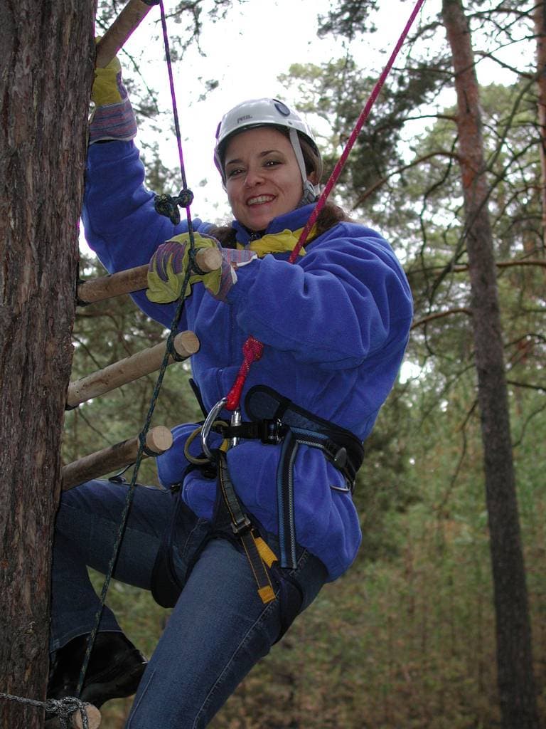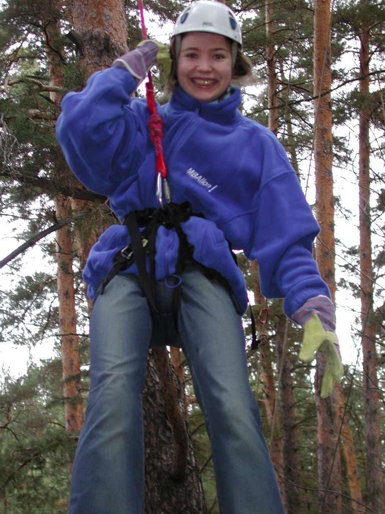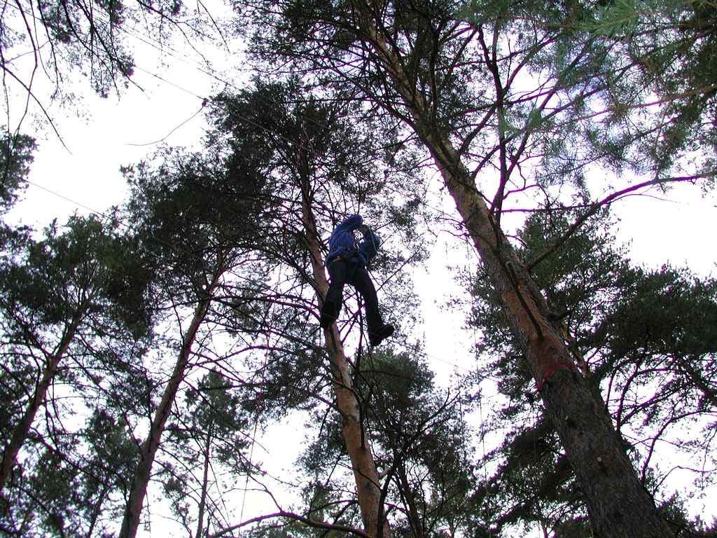переправляться по тросу, натянутому между деревьями на приличной высоте