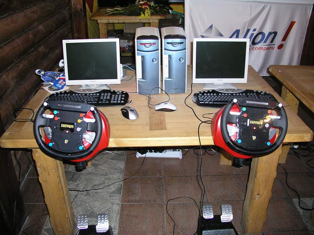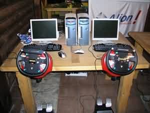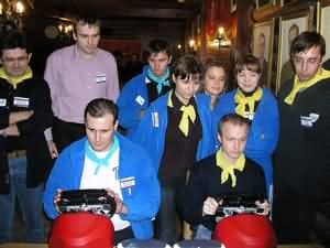 Но это было еще не все, последним конкурсом в этой части стали командные заезды в Need For Speed: High Stakes 2 на гоночных стендах, оборудованных рулями от Thrustmaster :-) .