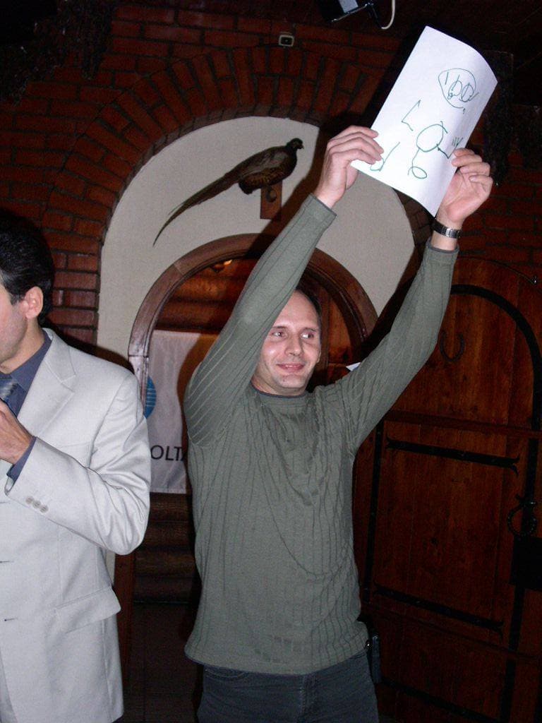 На снимке — второй представитель прессы, Николай Докучаев («Computerra»), которому досталась MINOLTA DiMAGE A1.