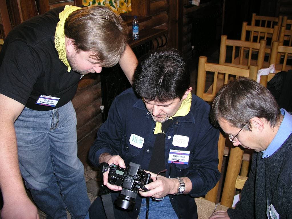 рассказавшим об истории компании (Вот вы знаете, например, что на японских самолетах, бомбивших Пёрл-Харбор, стояли системы наведения от Asahi Optical? Я тоже не знал.), и представившим новые модели — топ *ist D и линейку Optio. Оживление в зале вызвала информации о появлении в фотокамерах от Pentax русифицированного меню.