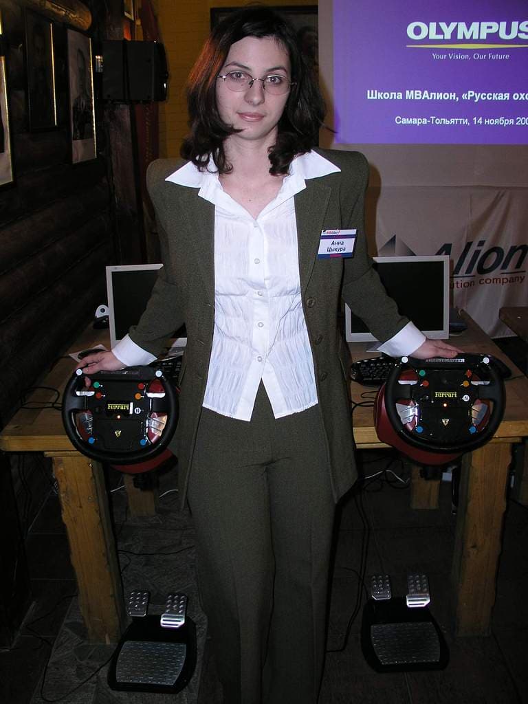 Алексей Пляшкевич, руководитель направления мультимедиа «АЛИОН» (слева) и Анна Цыкура, бренд-менеджер Thrustmaster (справа)