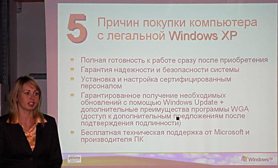 - Наконец, завершающим аккордом стало выступление представителей Microsoft, посвященное программе Windows Genuine Advantage.
