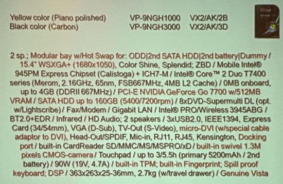 Новые ноутбуки, подчеркнул ведущий конференции, построены на новой платформе. Ноутбуки традиционно представлены в двух цветовых решениях, это желтый (рояльный лак в пять слоев) и черный (пятислойный (???) карбон на крышке).