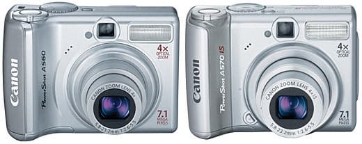 Среди фотокамер PowerShot серии A также можно найти модели с новым процессором DIGIC III, предоставляющим функции распознания лиц, автоматического устранения эффекта «красных глаз» при воспроизведении, а также настройку эквивалентной чувствительности ISO 1600. Это 7,1-мегапиксельные PowerShot А560 и A570 IS с 4-кратным оптическим зумом и 2,5-дюймовым ЖК-экраном.