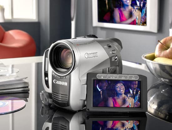 В сегменте DVD-видеокамер наиболее интересной, конечно, является 5,39-мегапиксельная модель Canon DC50 на базе DIGIC DV II. Эта видеокамера оптимизирована для широкоформатной съемки (формат 16:9), оснащена 10-кратным оптическим зум-объективом, 2,7-дюймовым ЖК-монитором и цветным электронным видоискателем. Она имеет оптический стабилизатор изображения Super Range, впервые представленный в модели HV10, и поддерживает двухслойные носители (DVD-R DL), которые вкупе с аккумулятором увеличенного срока работы позволят снимать более длительное время — на один диск можно записать до 108 минут. С функцией Quick Start можно надеяться, что ни один интересный момент не будет упущен — нажав на кнопку Quick Start, камеру можно переключить в энергосберегающий режим ожидания, при повторном нажатии на кнопку — камера может снимать примерно через секунду.