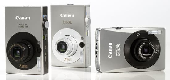 Стильные Canon Digital IXUS 75 и Digital IXUS 70 немного отличаются друг от друга дизайном и имеют разные по размеру дисплеи Canon PureColor (2,5 дюйма у IXUS 70 и 3 дюйма у IXUS 75), остальные характеристики у фотоаппаратов одинаковые. Оба они оснащены 1/2,5-дюймовыми ПЗС-сенсорами с разрешением 7,1 Мп и новыми процессорами обработки изображений DIGIC III.