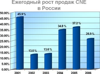Как отметил Игорь Щуров, существенную долю роста продаж в Европе обеспечил рост в России, уже, правда, не такой бурный, как в предыдущие годы. Темпы роста снизились с 37,2% в 2005 году до 26,9% в 2006 году.