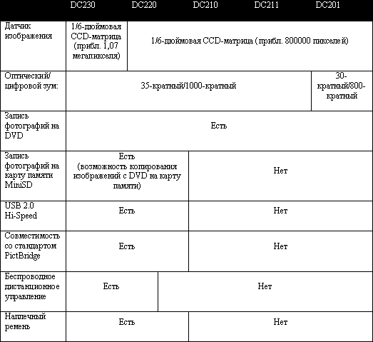 Остальные DC-новинки очень похожи между собой, они также работают на DIGIC DV II, поддерживают двухслойные DVD и имеют функцию Quick Start.