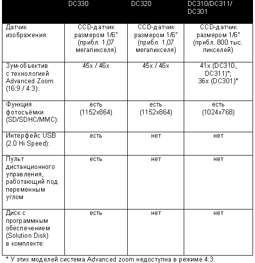 Ассортимент DVD-видеокамер Canon пополнила серия DC300, включающая следующие модели — DC330, DC320 и DC310/311/301. Они также поддерживают широкоформатную запись 16:9 и оснащены новой системой Advanced Zoom. Камеры совместимы с двухслойными дисками DVD (DVD-R DL), а две старшие модели, помимо всего прочего, могут осуществлять запись фотографий на карты памяти SD или SDHC.