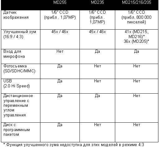 Итак, первой Иннокентий Пан представил новую серию доступных MiniDV-камер MD200 с улучшенным зумом. В серию MD200 входит широкий ряд моделей — MD255, MD235 и MD215/216/205, которые могут удовлетворить самые разные потребности: от мегапиксельной записи в формате CCD до видеокамер, имеющих входной разъем для микрофона. Все они просты в эксплуатации, предлагают функцию широкоформатной съемки и используют функцию быстрого запуска.