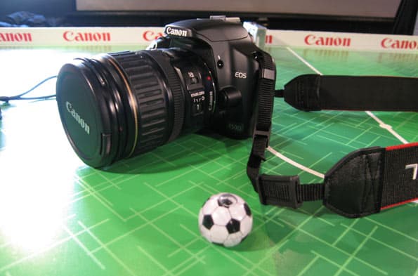 Так, многие новинки Canon разместились на демонстрационном столе, стилизованном под футбольное поле!