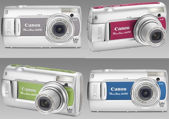 Digital IXUS 80 IS выпускается в четырех цветах — «классический серебристый», розовый, «шоколад» и «карамель». Четыре цвета предусмотрено и для PowerShot A470 — красный, синий, зеленый и, конечно, серебристый.