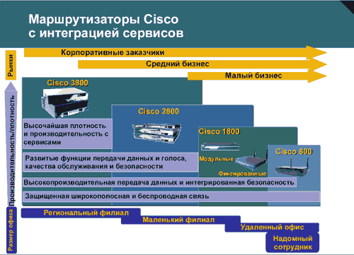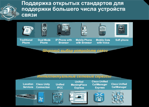Функции сервера в таких системах исполняют различные софтовые и аппаратные платформы, которые поддерживаются широким спектром продуктов Cisco от интегрированных маршрутизаторов до огромных по ёмкости специализированных решений.