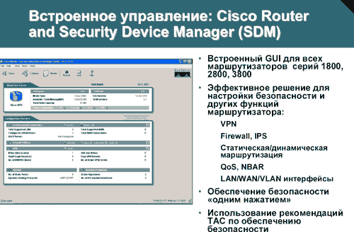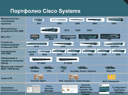 Базовыми функциями безопасности наделены все сетевые устройства Cisco, они встроены в операционную систему IOS на самом глубоком уровне, однако именно в этом вопросе предела совершенству пока не видно. Угрозы с каждым годом становятся всё изощрённее, время для реакции на них, отпущенное системе защиты — всё меньше. Только комплексные проактивные решения могут обеспечить адекватную реакцию, и такие решения непрерывно разрабатываются и совершенствуются компанией.