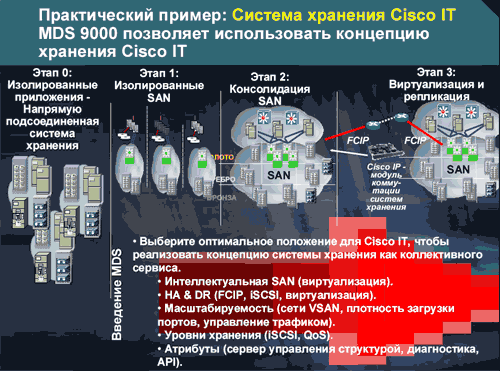 представлены в продуктовой линейке MDS 9000. Это коммутаторы Fiber Channel со скоростью передачи данных до 4 Гб/с.