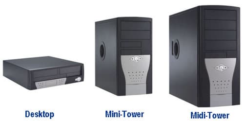 - Пользователь может выбрать один из трех типов корпусов: Desktop, Mini-Tower и Midi-Tower.