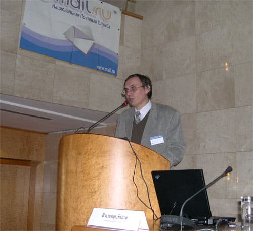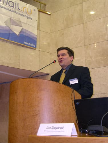 Конференцию продолжил Олег Покровский, координатор венчурной программы VEX.ru, которая рассматривается ее организаторами в качестве экспериментальной технологической площадки для обкатки идей. Он рассказал об опыте программы и о том, как привлечь инвестиции в небольшой интернет-проект. Для обозначения масштаба венчурной программы были приведены следующие данные: с середины прошлого года в рамках программы VEX было размещено 15 венчуров на общую сумму чуть более $400 000.